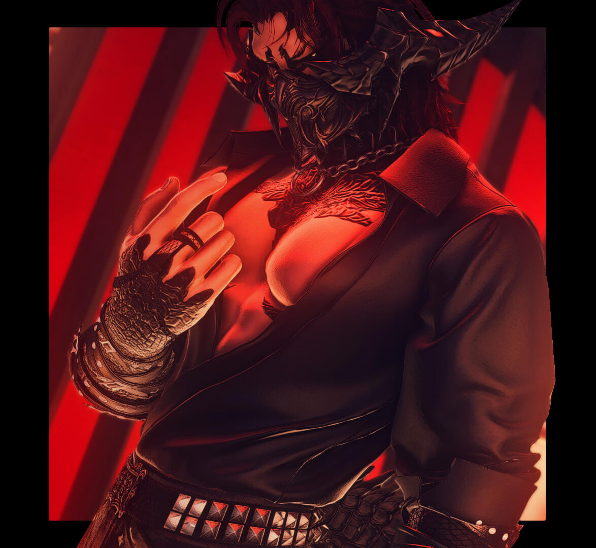 usually seen wearing a half-mask over the bottom of his face, though he's known to take it off fairly casually.